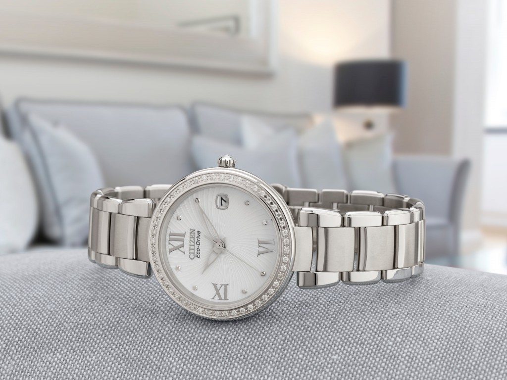 We have a range of Citizen watches. Women will love how crystal accents sparkle on the bracelets of the pieces, while men will find it difficult to leave home without a leather chronograph Citizen wristwatch, featuring a silvertone stainless steel case.