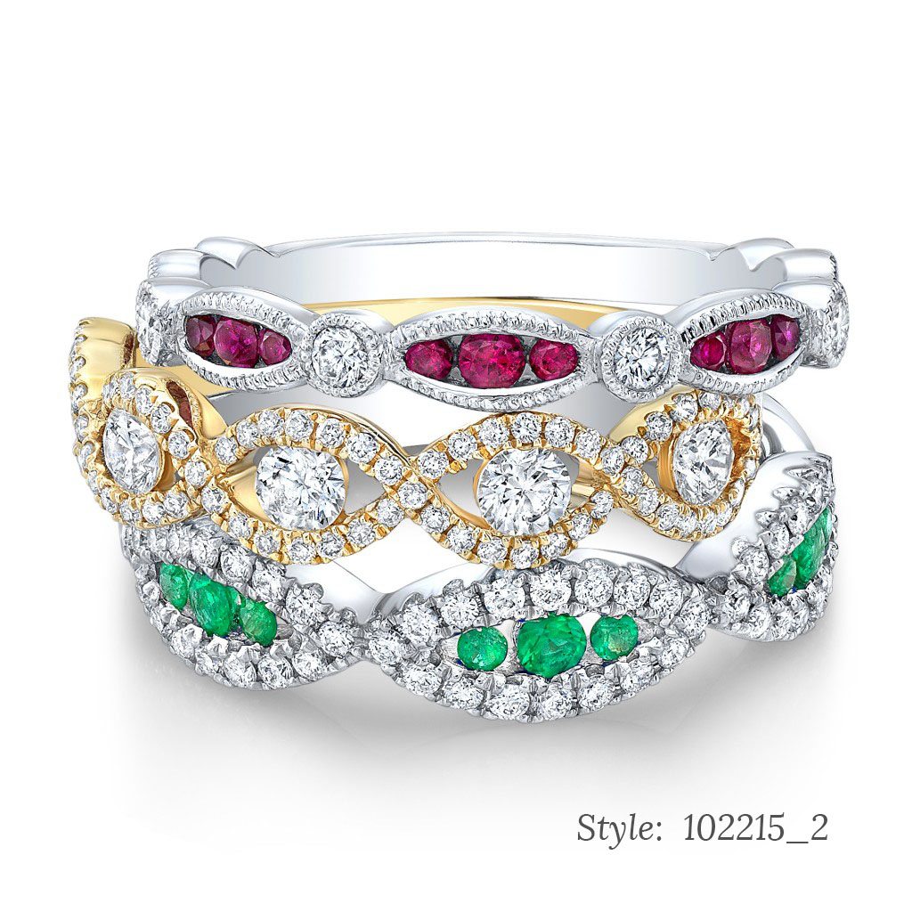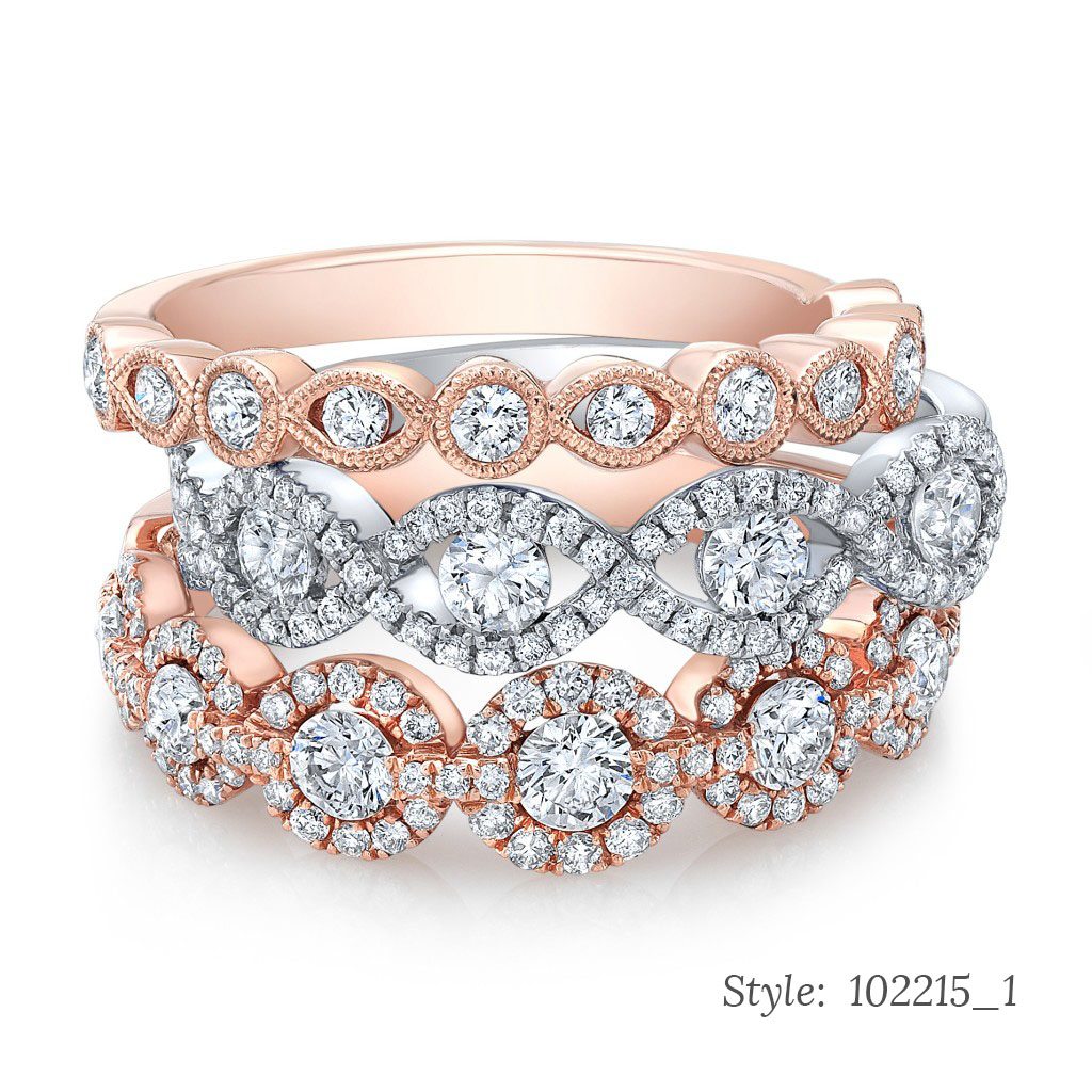 Wearing two or more rings stacked over one another offers a stylish, magnified impact. It also offers flexibility – you choose which designs to wear, how to stack them, and which pieces to match with your outfit and the occasion. And depending on the extensiveness of your ring collection, you can change the stack to suit your mood. AAA Jewelers offers one of the largest selections of stackable bands. Our stunning pieces can be worn alone, together – or even combined with your engagement ring to add incredible dazzle to a normal day.